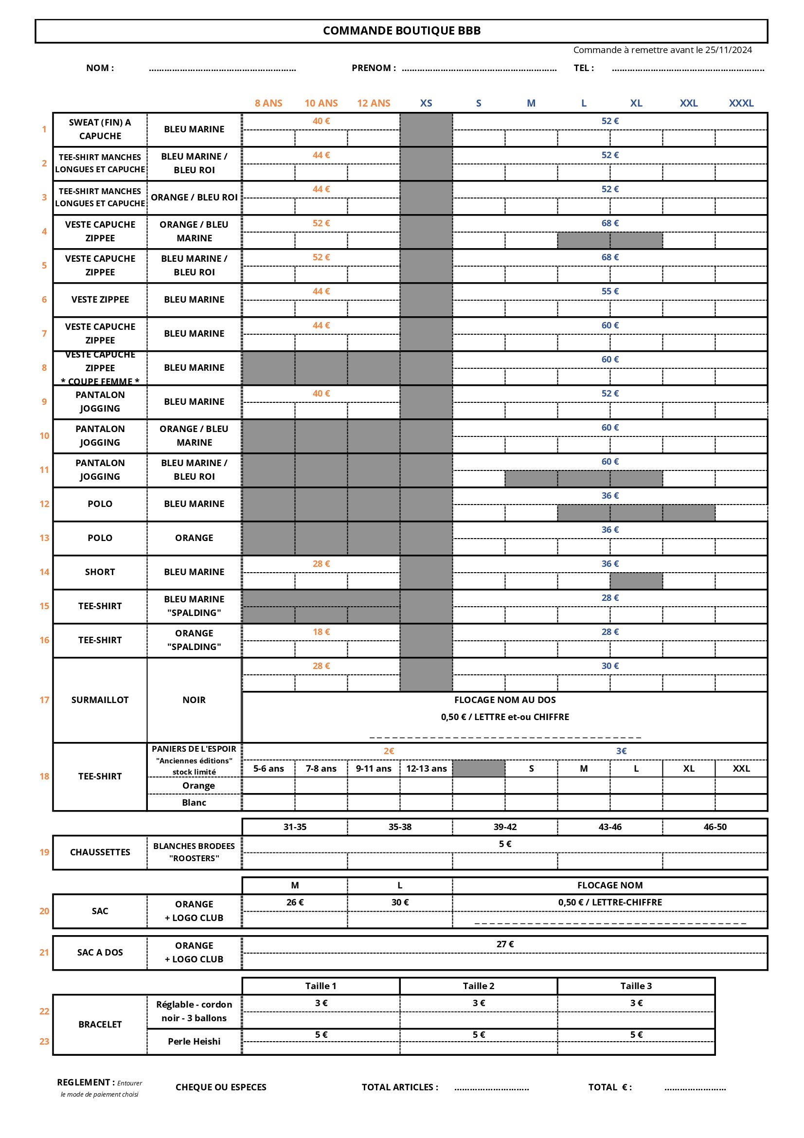 Inscription paniers de l'espoir 2025